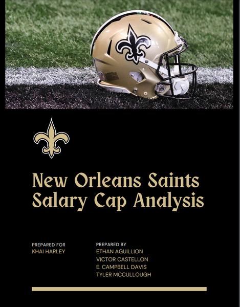 Flores MBA Program • April 13 2023 New Orleans Saints Salary Cap Strategy Analysis *Selected as one of the top analyses in the class and was shared with company executives