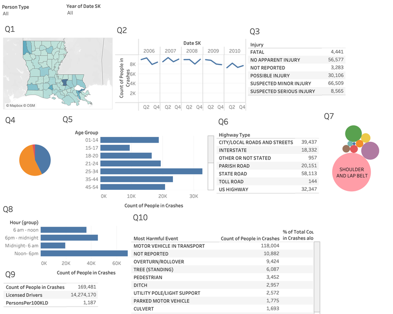 Analytics Graduate Certificate • July 22 2023 Visual Modeling Program used: TableauDashboard created in Tableau using Louisiana crash data